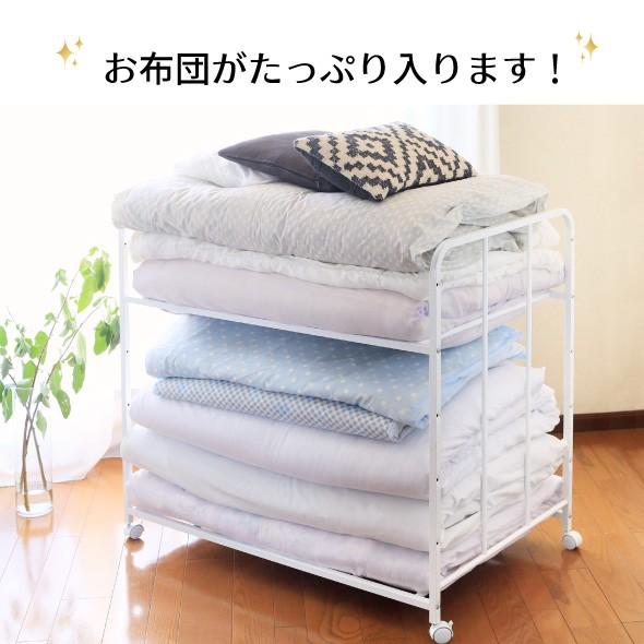 楽天市場 予約販売 9月中旬 下旬出荷予定 布団 収納 ラック ハイタイプ 2段 ふとん収納 布団 収納 ラック ウォークインクローゼット 整理棚 ふとん 収納 布団 ラック 布団 干し 整理棚 すのこ 隙間収納 清潔 押入れ収納 キャスター 白 収納ラック クローゼット