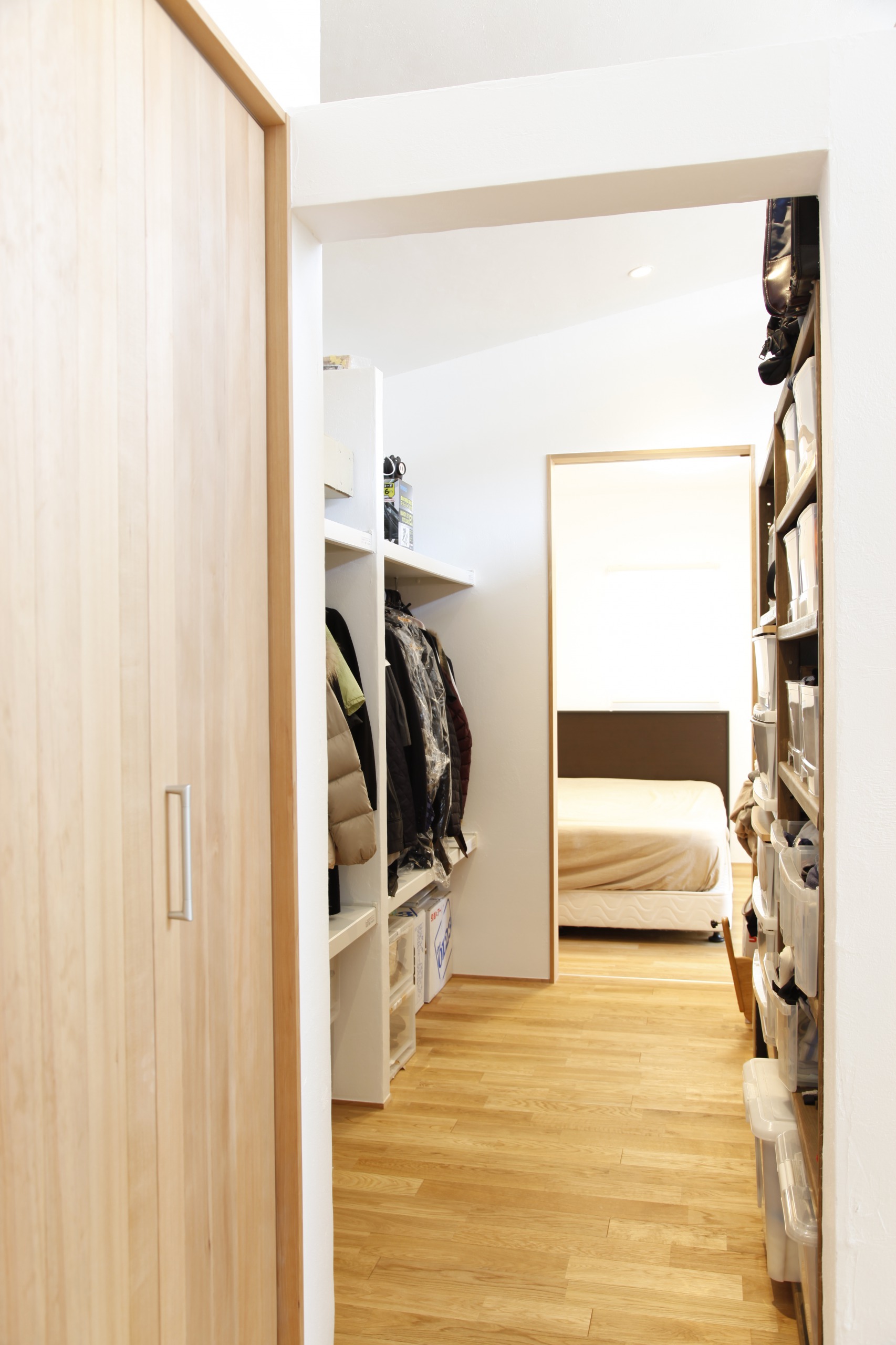 扉を開け閉めする動作や設置スペースを省いた方が 動線もスムースですし 数センチであってもスペースを確保する事ができます また 主寝室の扉を閉めておけば 家人以外がホールを通っても ウォークインクローゼットの中身が人目に触れる事もありません 以下は自宅のクローゼット扉. ウォークインクローゼット とは 人が歩いて出入りできる大型衣類収納スペースのこと 寝室に設けることが多い 人が歩けるスペースがあればウォークインクローゼット なければクローゼットということなんですね. その後は 部屋になっていて中に入れるタイプの wic ウォークインクローゼット が流行りだしました 近年では 扉が2ヶ所あって通り抜けが可能なタイプの wth ウォークスルークローゼット というものが注目され始めています.